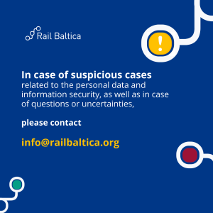 With this in mind, we would like to remind you that the Rail Baltica project implementers, outside of legal obligations, never ask for and do not use or publish any personal data or other information containing personal data for the purposes of the project implementation!