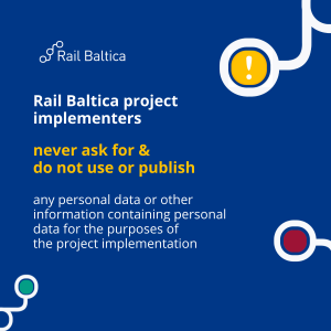 With this in mind, we would like to remind you that the Rail Baltica project implementers, outside of legal obligations, never ask for and do not use or publish any personal data or other information containing personal data for the purposes of the project implementation!