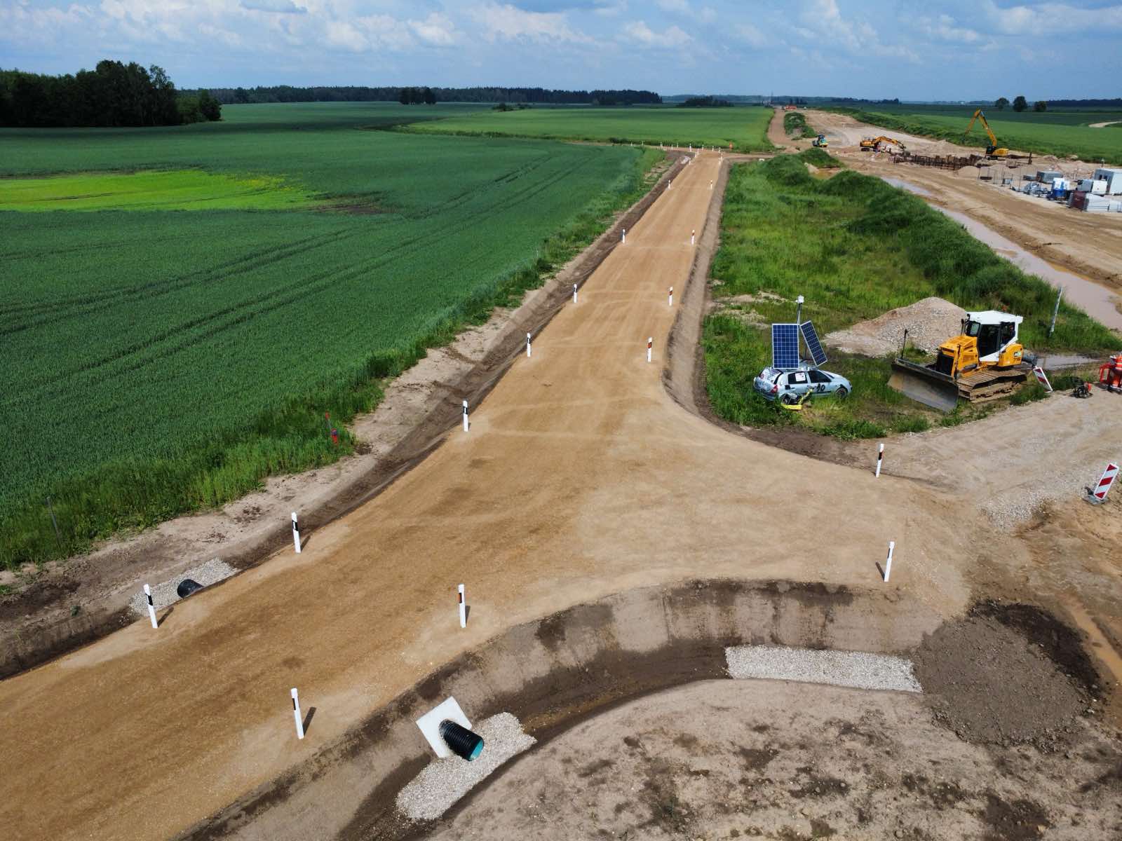 The construction of 13.7 km of roads, drainage networks, and culverts on the Žeimiai-Šėta section commenced in April 2023. The project, valued at EUR 7.7 million (excl. VAT), was executed by the Latvian company AS A.C.B., which was selected through a public procurement procedure.