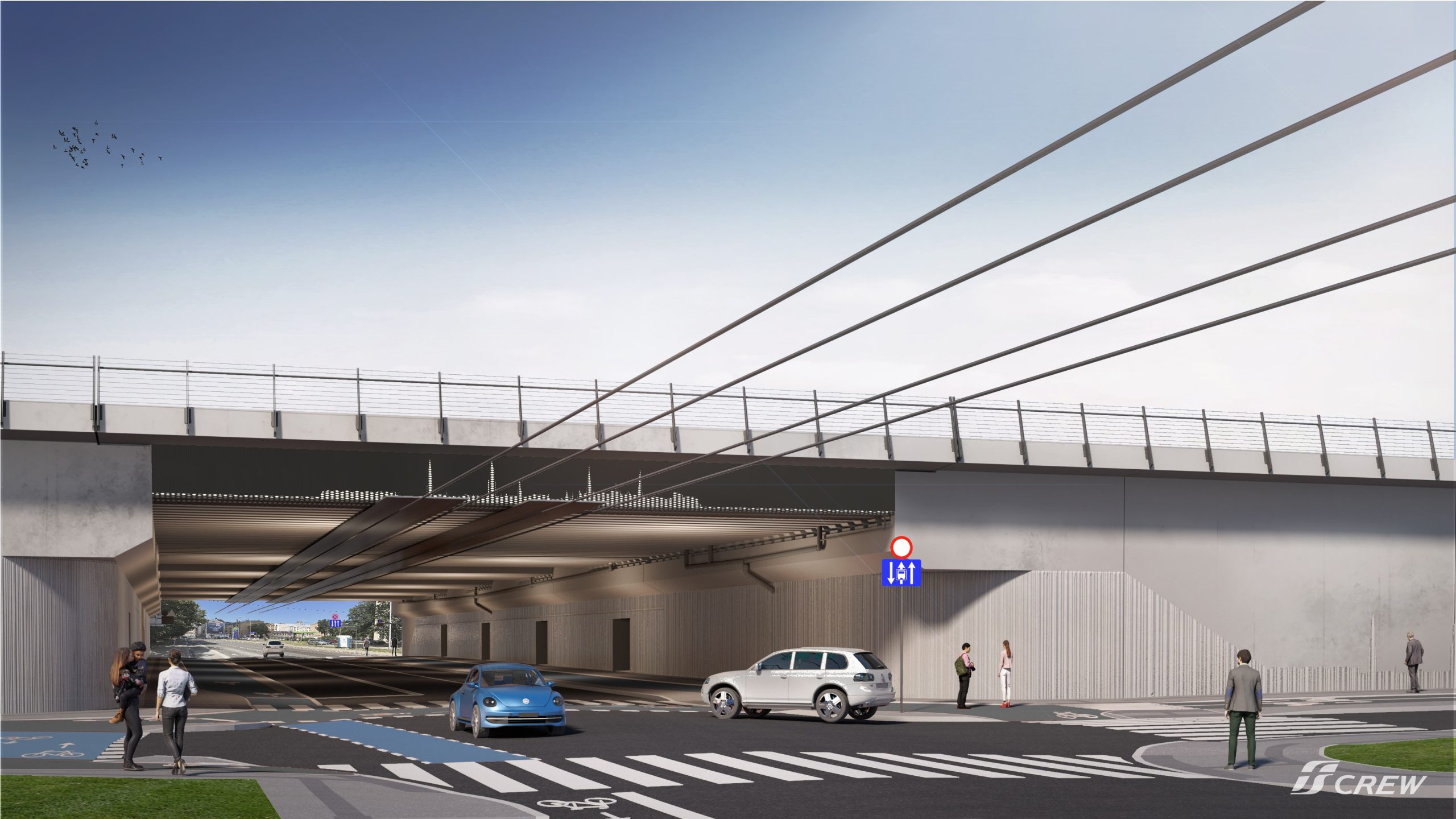 Visualizations of how the Dzirnavu Street overpass will look in the future from both (south, north) sides: