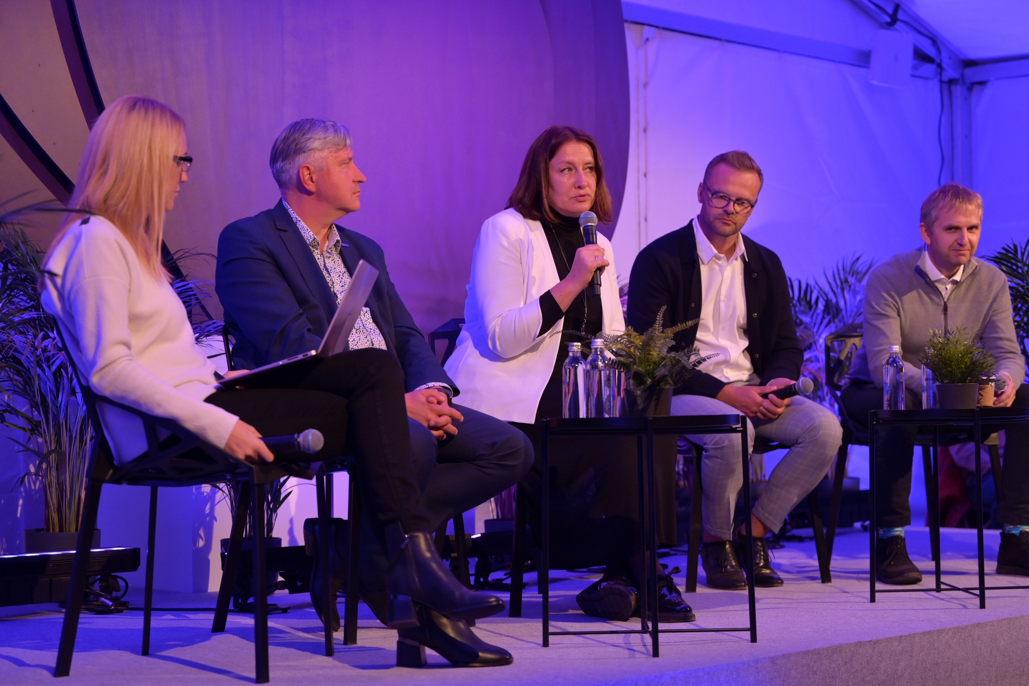 Discussion ‘What it means to manage a project worth hundreds of millions of euros?”, which was organized on 2 September in the discussion at the festival “Būtent!”, engaged Rail Baltica representatives in the talks about the Global Project’s importance for the region. Discussion was joined by Marius Narmontas, Head of the Lithuanian branch of RB Rail AS, central coordinator of the Rail Baltica global project, Loreta Maskaliovienė, Deputy Minister of Transport and Communications, Arenijus Jackus, Head of Strategy and Business Development, Management of Rail Baltica, LTG Infra and Tomas Varneckas, Director of Infrastructure at EPSO-G, and moderated by the journalist Daiva Žeimytė-Bilienė.