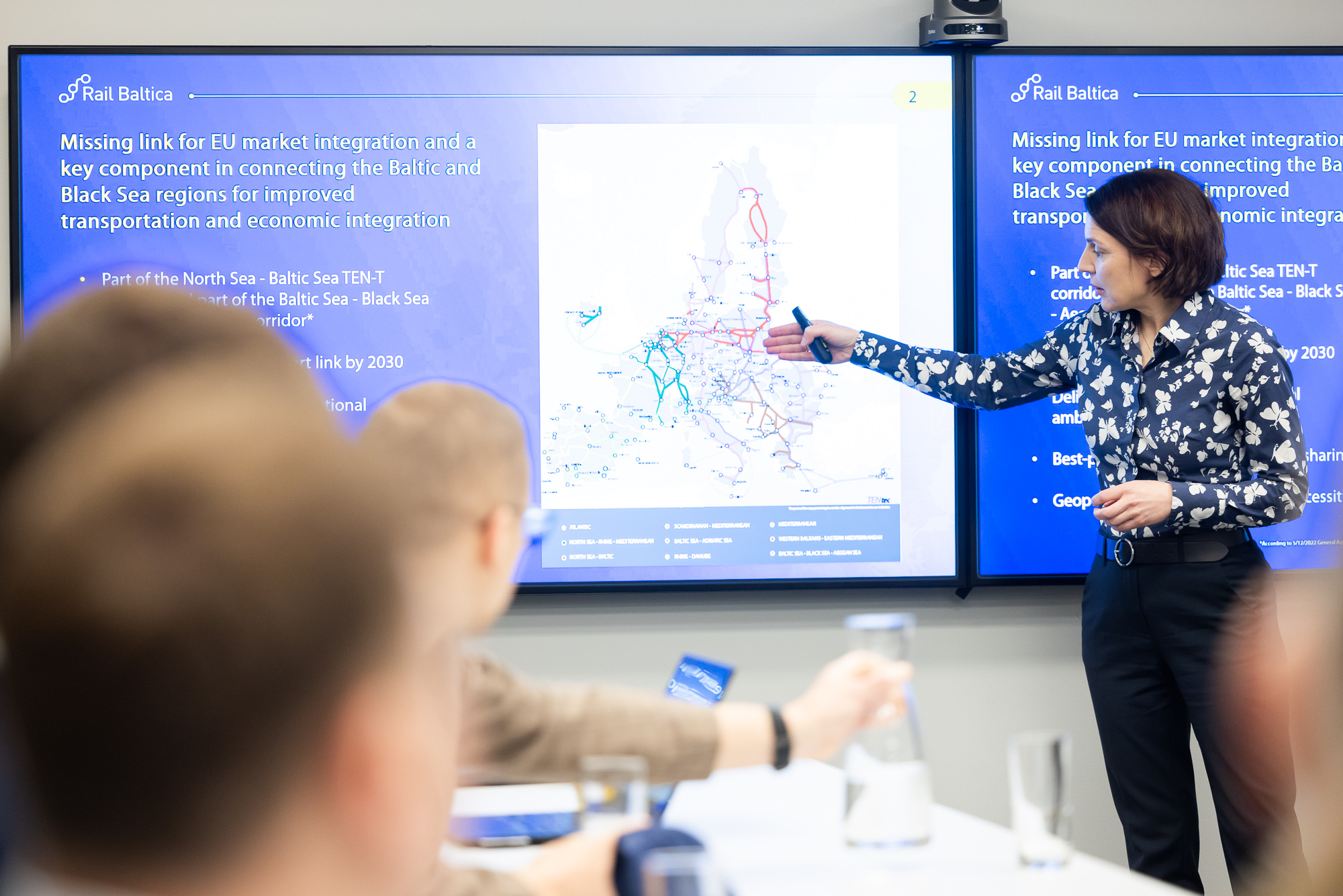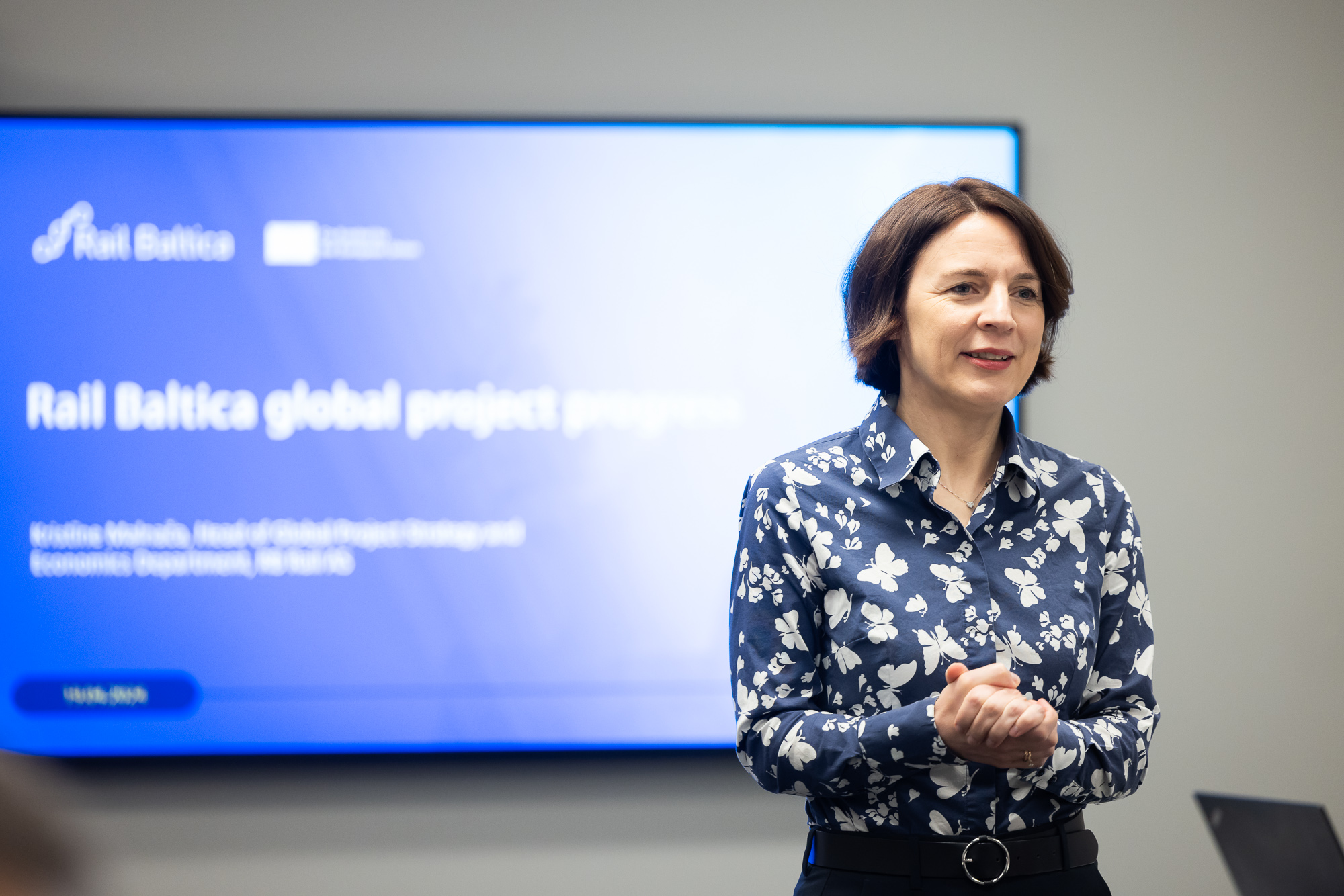 Kristīne Malnača, Head of the Global Project Strategy and Economics Department at RB Rail AS, delivered an in-depth overview of the project, covering its significance as a crucial transport, military, and economic corridor. She elaborated on the diverse range of railway services to be provided by Rail Baltica and highlighted the substantial economic, environmental, and geostrategic benefits it brings to the region. Kristīne also discussed the potential for air-to-rail connection, opportunities for regional and urban development, and the broad network of Rail Baltica international partners.
