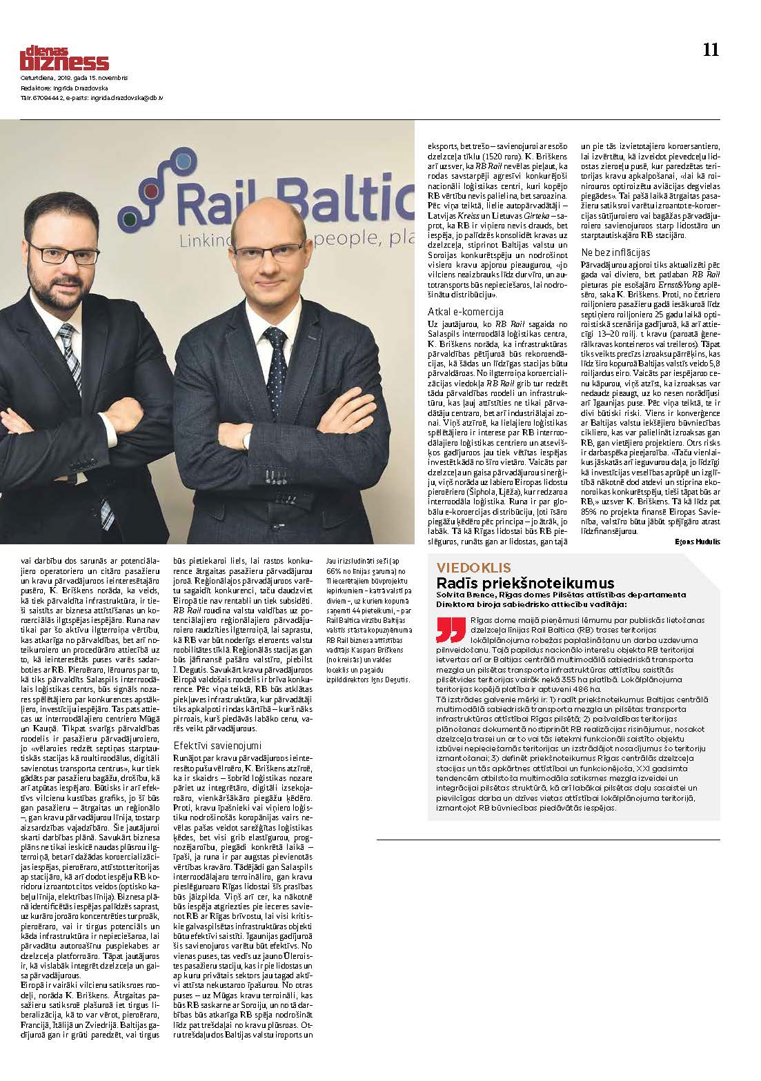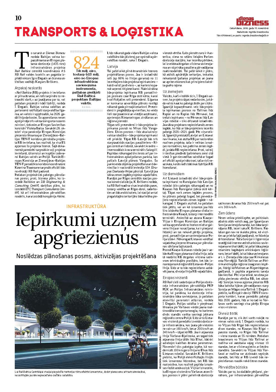Majandusajaleht Dienas Bizness avaldas Rail Baltica projekti arengukäiku kirjeldava artikli, milles võtavad sõna RB Rail AS ajutine tegevjuht, juhatuse esimees ja finantsjuht Ignas Degutis ning äriarenduse juht Kaspars Briškens.