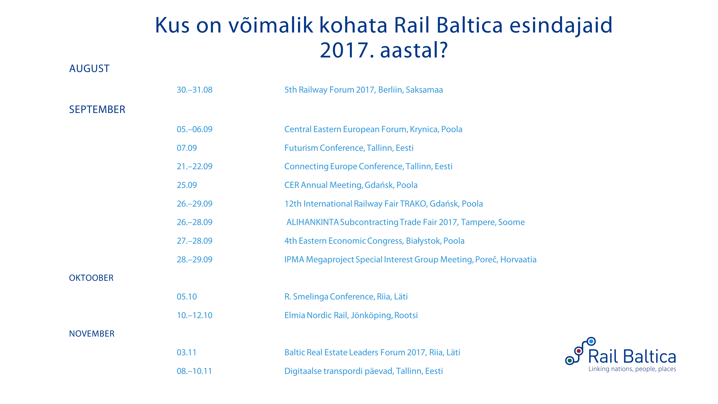 Kus on võimalik kohta Rail Baltica esindajaid 2017. aastal?