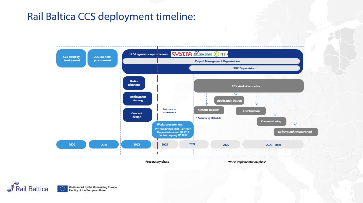 Rail Baltica Control-command and signalling (CCS) subsytem design and build procurement status can be found here.