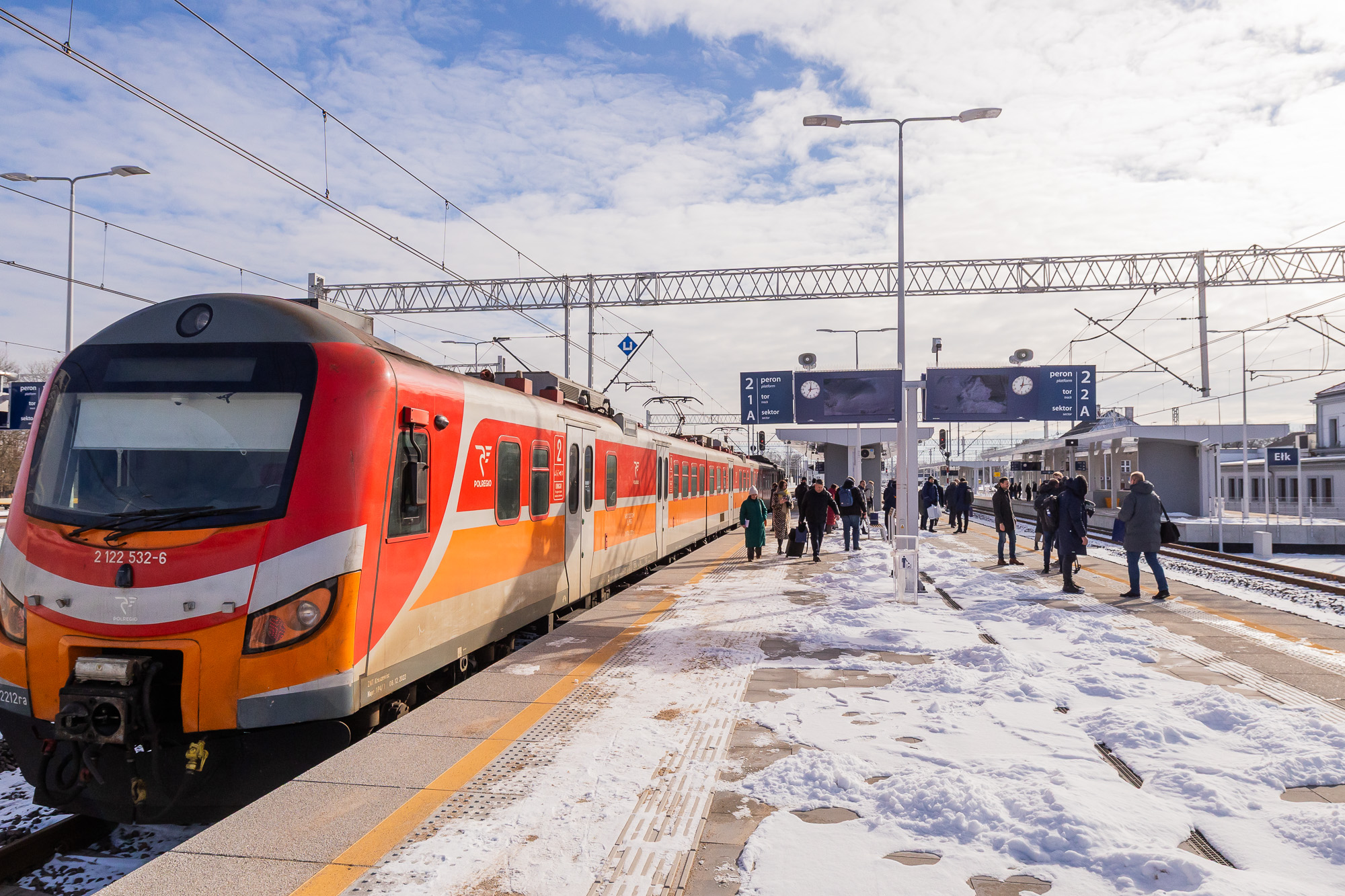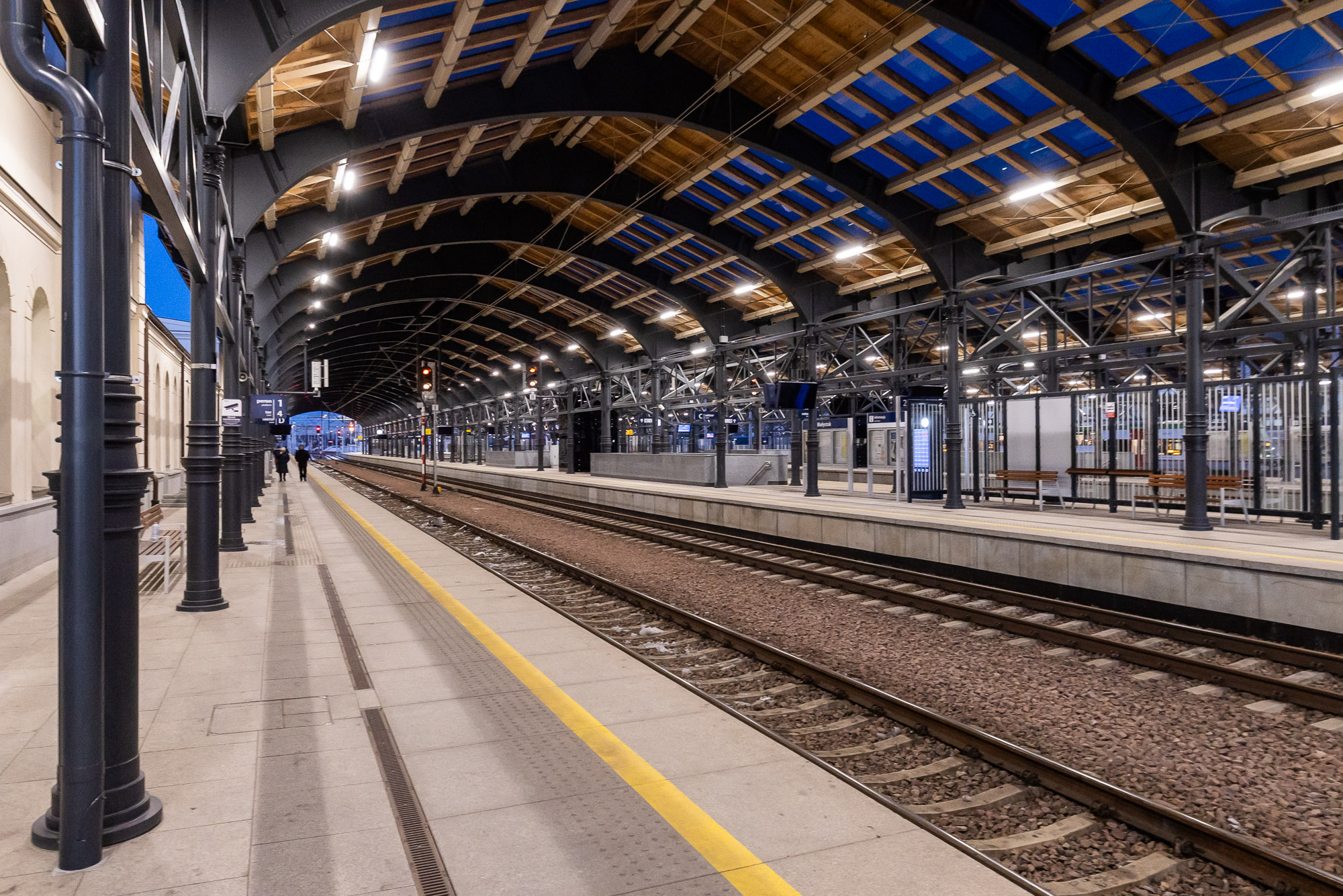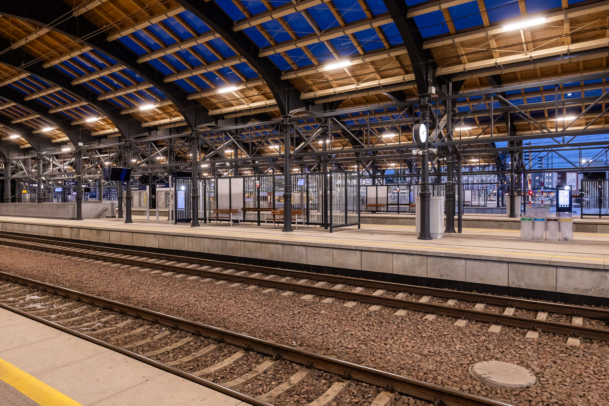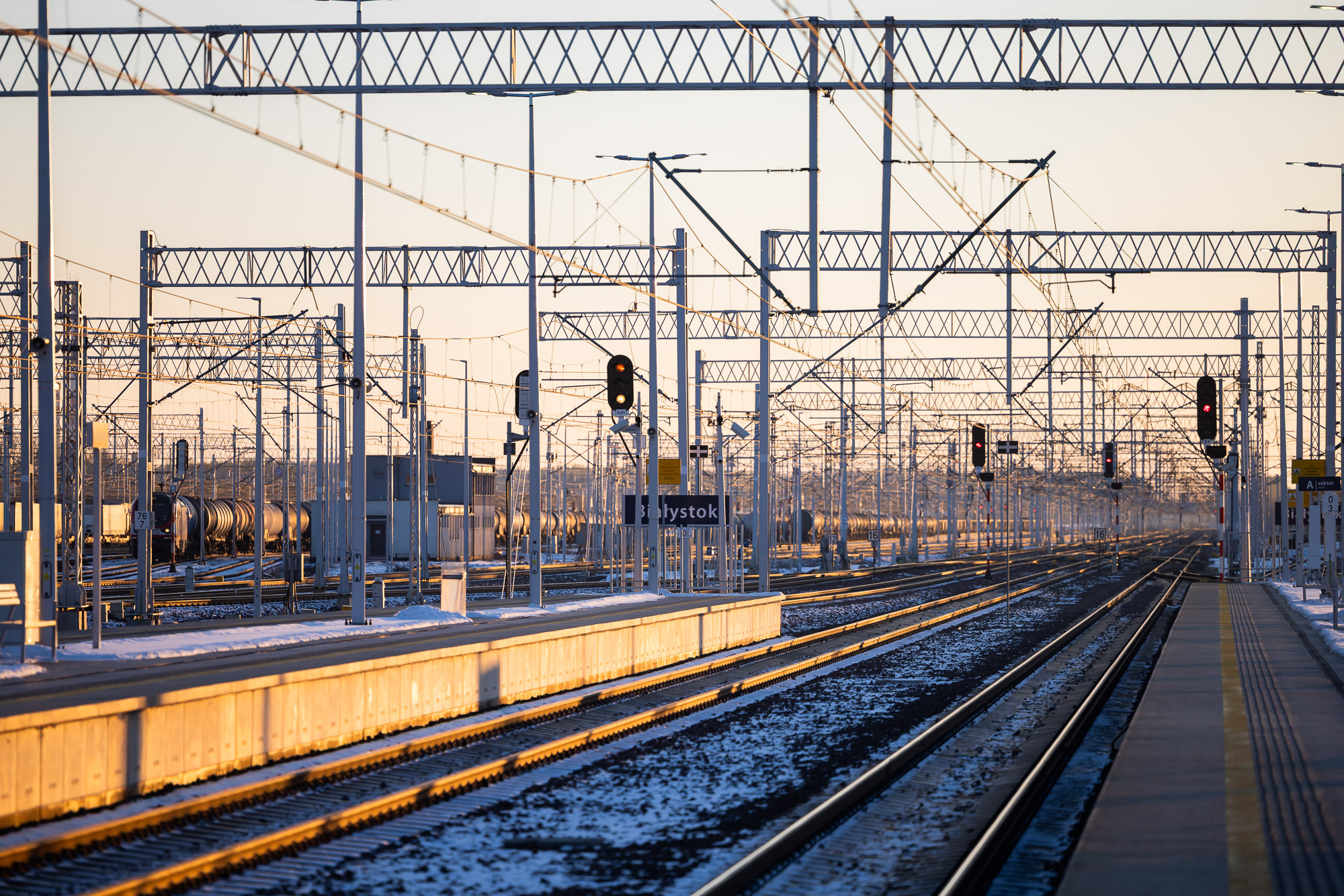 Poland’s railway network spans over 18,000 kilometers, predominantly consisting of European standard-gauge (1435 mm) tracks. A limited number of 1520 mm tracks exist at border crossings with Russia, Belarus, Ukraine, and Lithuania. Currently, trains operate between Poland and Lithuania; however, due to the difference in rail gauge, passengers must change trains at the border. This is facilitated by a platform where one side hosts a Polish 1435 mm train, and the other side a Lithuanian 1520 mm train, allowing passengers to switch between them.