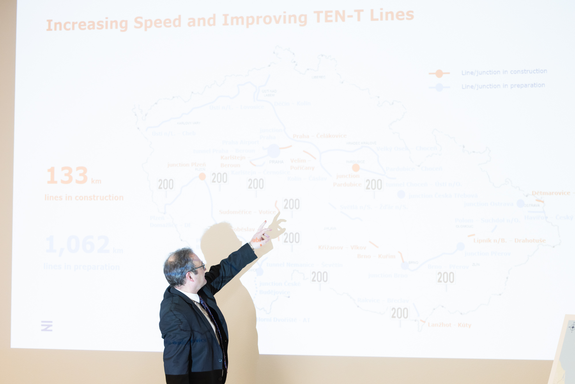 Additionally, Mr Radek Čech, Director of the Department for International Cooperation at Správa železnic, presented the organization’s extensive portfolio of projects, including the V4 VRT and Via Vindobona projects.