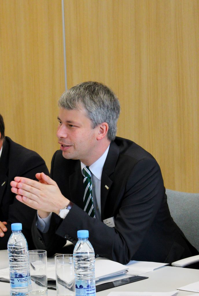 Kaspars Briškens, RB Rail AS Head of Business Development, presented the delegation with the status of the project while also highlighting possible ways of successful cooperation. Representative from Deutsche Bahn shared their experience in working with the Rail Baltica project and outlined future cooperation possibilities in infrastructure development, engineering and construction supervision, railway operations, maintenance, training future staff as well as offer exchange of experience.
