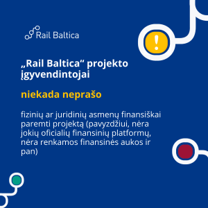 Atsižvelgdami į tai, norime priminti, kad projekto „Rail Baltica“ įgyvendintojai niekada neprašo ir nenaudoja bei neskelbia jokių asmens duomenų ar kitos informacijos projekto įgyvendinimo tikslais!