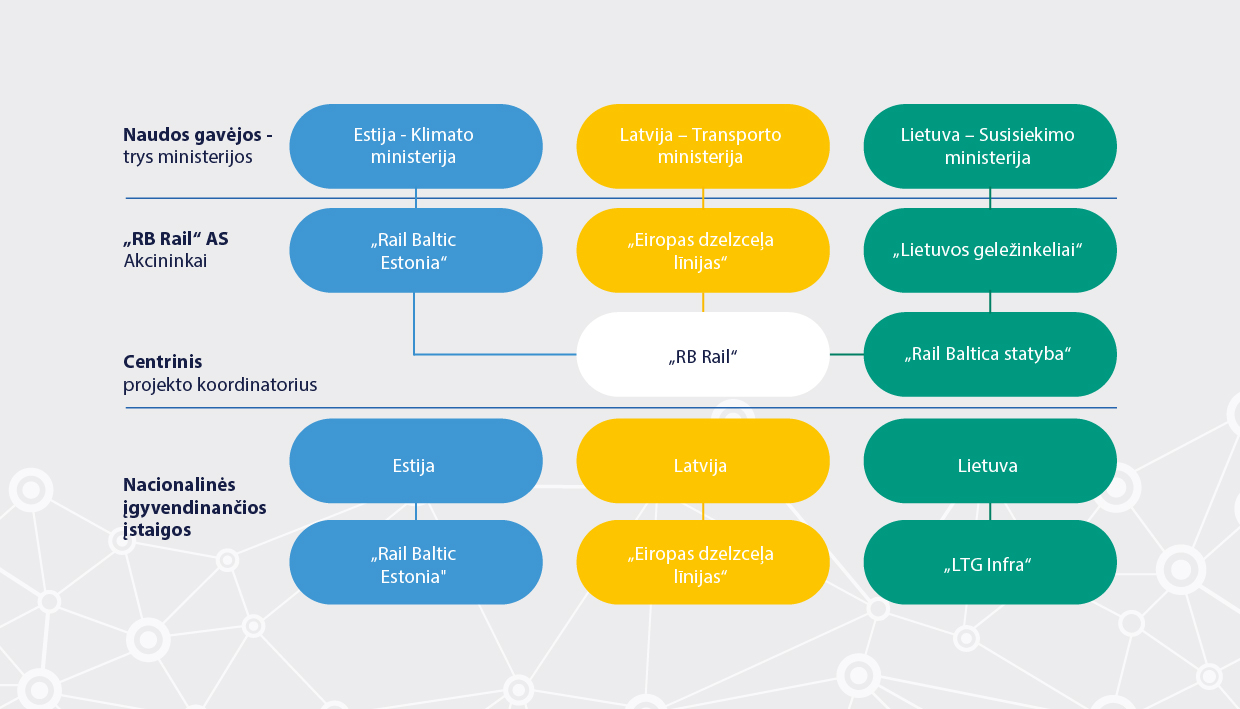 Projektą Rail Baltica įgyvendina trys Baltijos šalys – Estija, Latvija ir Lietuva.