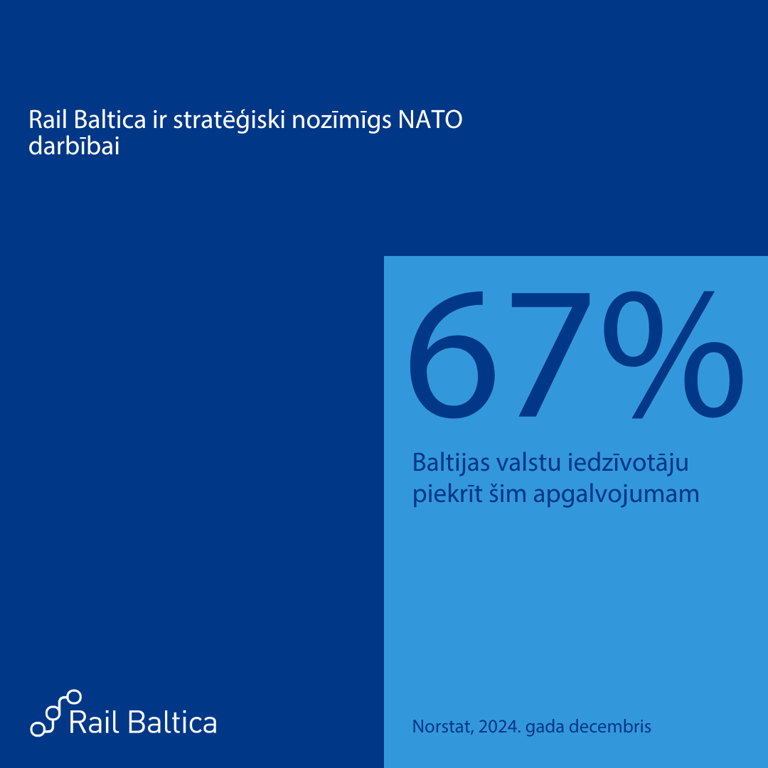 Tāpat projekta militārā nozīme sadarbībai ar NATO rezonē visā reģionā – 67 % respondentu piekrīt, ka Rail Baltica ir būtiska NATO operācijām. Šis viedoklis īpaši izteikts ir Lietuvā – 78 %, savukārt Latvijā un Igaunijā atbalsta līmenis ir līdzīgs – attiecīgi 62 % un 60 %.