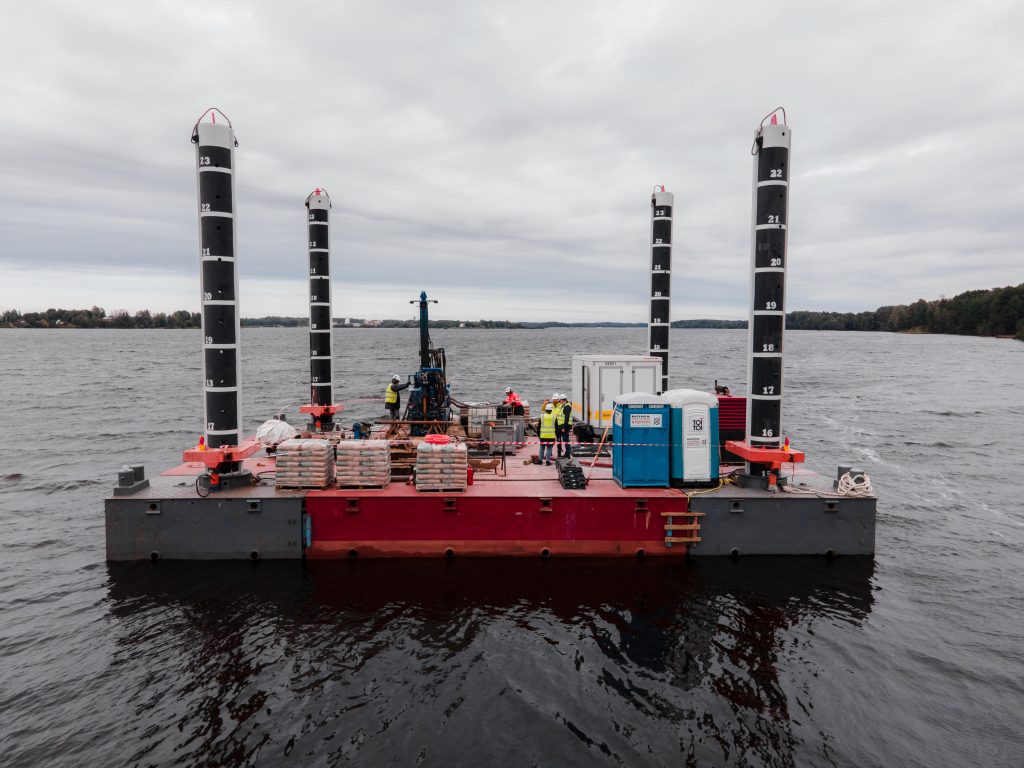 Pirms ģeotehniskās izpētes izbūvēta 25×25 m liela platforma. Tā kā izbūvēto platformu nevarēja līdz izpētes vietai pludināt pa Daugavu (traucēja HES aizsprosts), apjomīgo iekārtu atveda pa autoceļu. Lai nostiprinātu platformu upē un saglabātu to stabilu pat stiprā vējā, katrā platformas stūrī tika iedzīti balsti līdz pat upes dibenam. Tas ļāva urbšanas komandai droši un precīzi noturēt urbšanas iekārtu pareizajā stāvoklī. Peldošā platforma ar ģeotehniskajām urbšanas iekārtām astoņās vietās veica dziļurbumus Daugavas gultnē 35–50 m dziļumā (pati Daugava šai rajonā ir līdz 22 m dziļa).