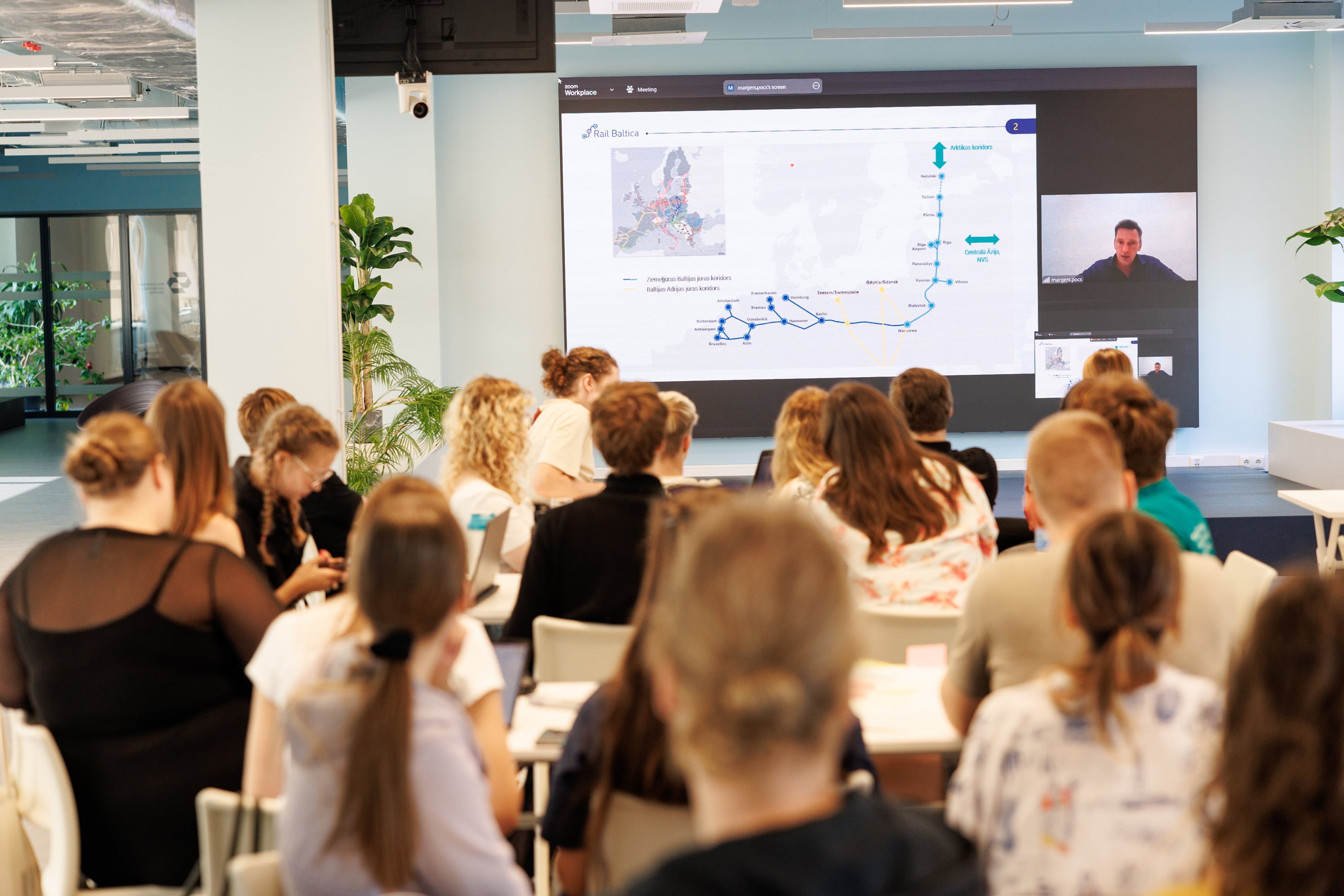 Viesojoties Rīgā, studentiem bija iespēja piedalīties Rail Baltica projekta ieviesēja Latvijā – uzņēmuma Eiropas Dzelzceļa līnijas pasažieru staciju attīstības vadītāja Marģera Poča vieslekcijā, kurā viņš iepazīstināja ar plānoto Rail Baltica trasi Latvijā un projekta sniegtajām iespējām, attīstot Rail Baltica stacijas.