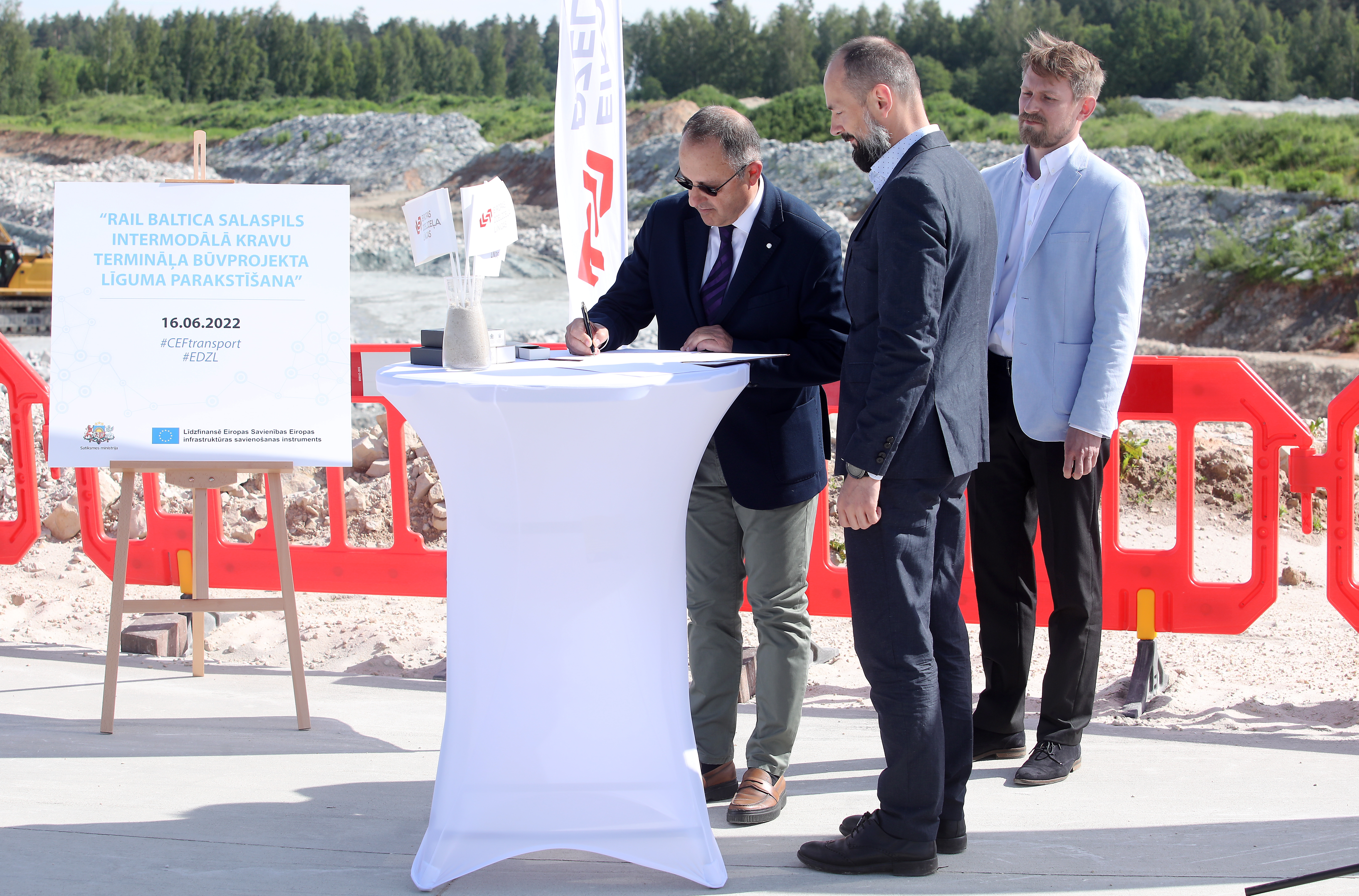 Uzsākta būvprojekta izstrāde Rail Baltica Salaspils Intermodālajam kravu terminālim, par to, ceturtdien, 16. jūnijā, parakstot līgumu, vienojās Rail Baltica projekta attīstītājs Latvijā – uzņēmums Eiropas Dzelzceļa līnijas un konkursa uzvarētāji, pieredzējušu Itālijas un Latvijas uzņēmumu apvienība.