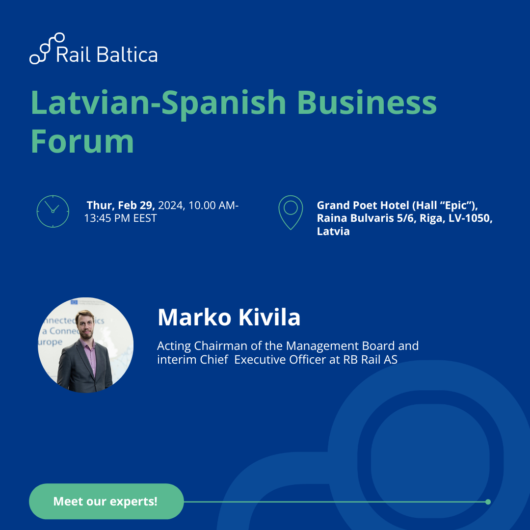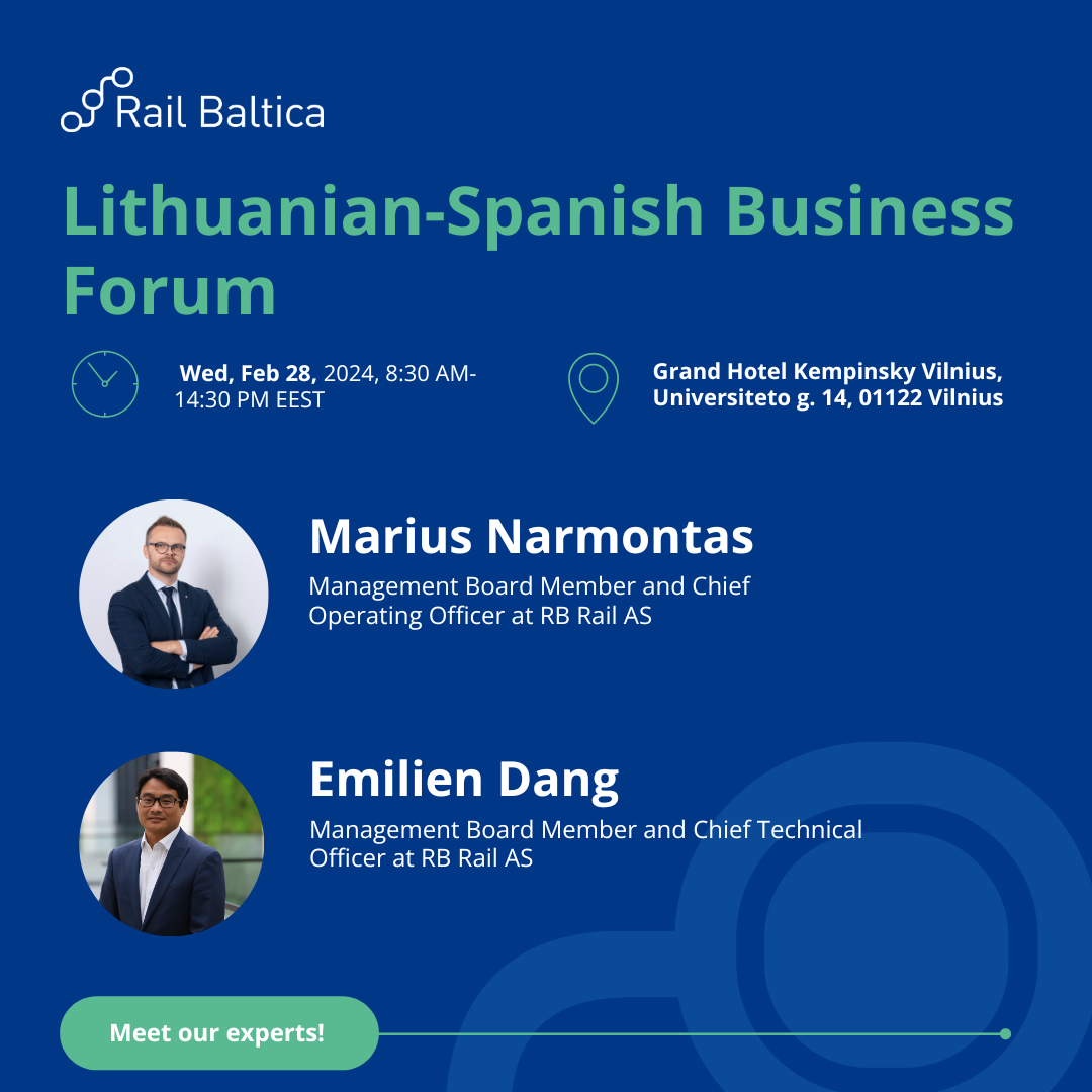 Don’t miss the opportunity to find out the latest news on Rail Baltica’s progress at two events in Vilnius and Riga, organized by the Embassy of Spain in Lithuania and Latvia. During the events, there will be also the opportunity to meet the Rail Baltica team at the Lithuanian-Spanish Business Forum, “Sharing Experiences Towards Modern and Sustainable Transport,” which will take place on the 28th of February 2024 in Vilnius. The Latvian-Spanish Business Forum will be held on the 29th of February 2024 in Riga. These dynamic events aim to facilitate the exchange of insights and strategies in the realm of modern and sustainable transport.