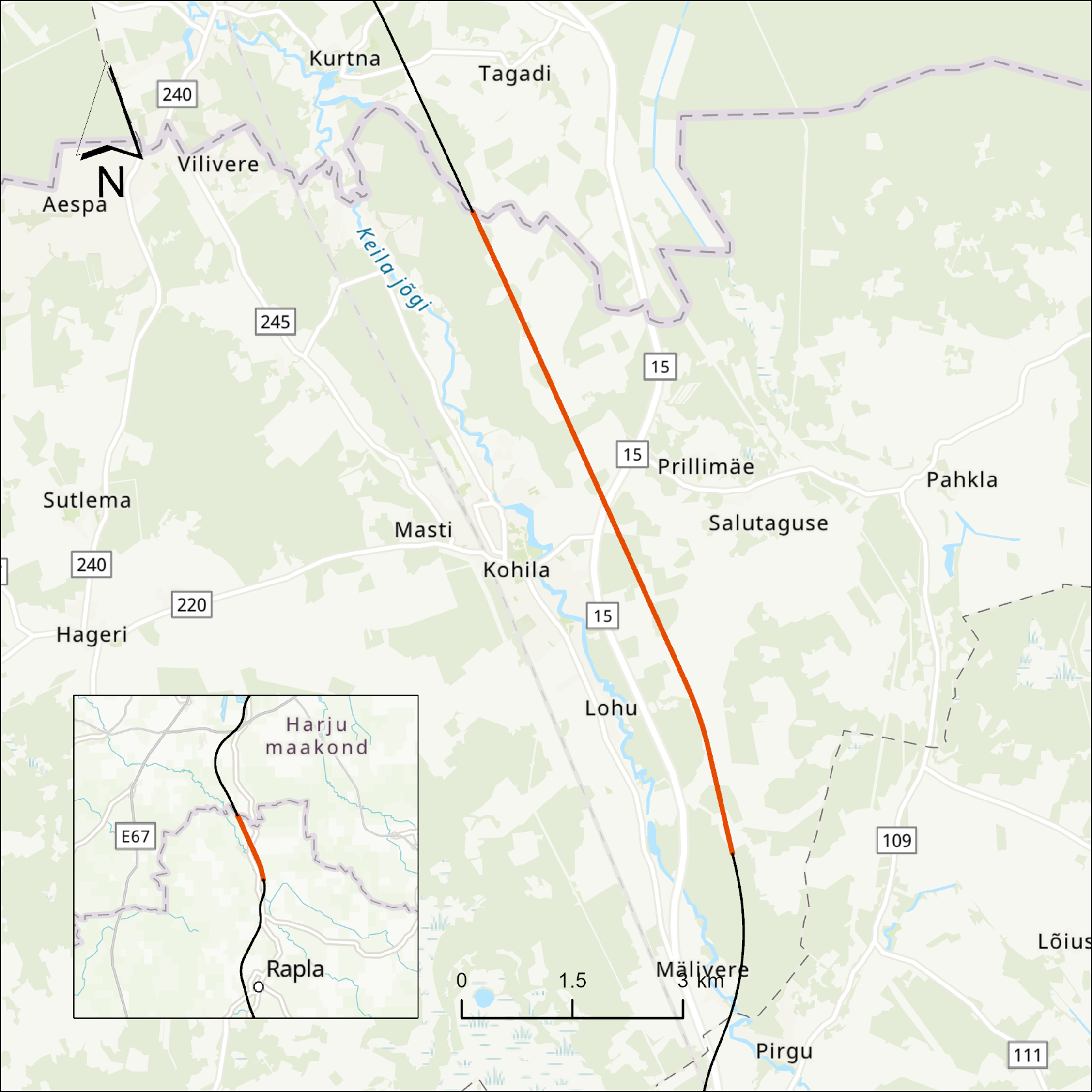 The construction works for the first phase of the railway infrastructure in Rapla County will commence at the border of Harju and Rapla counties and conclude in Loone village in Kohila municipality, covering a total length of 9.4 kilometers. The average width of the mainline embankment is 15 meters. In addition to the mainline embankment, seven major structures will be built under the contract (1 eco-duct, 5 road viaducts, and 1 pedestrian tunnel). The construction of the mainline embankment will also prepare for the establishment of the Rail Baltica Kohila local station.