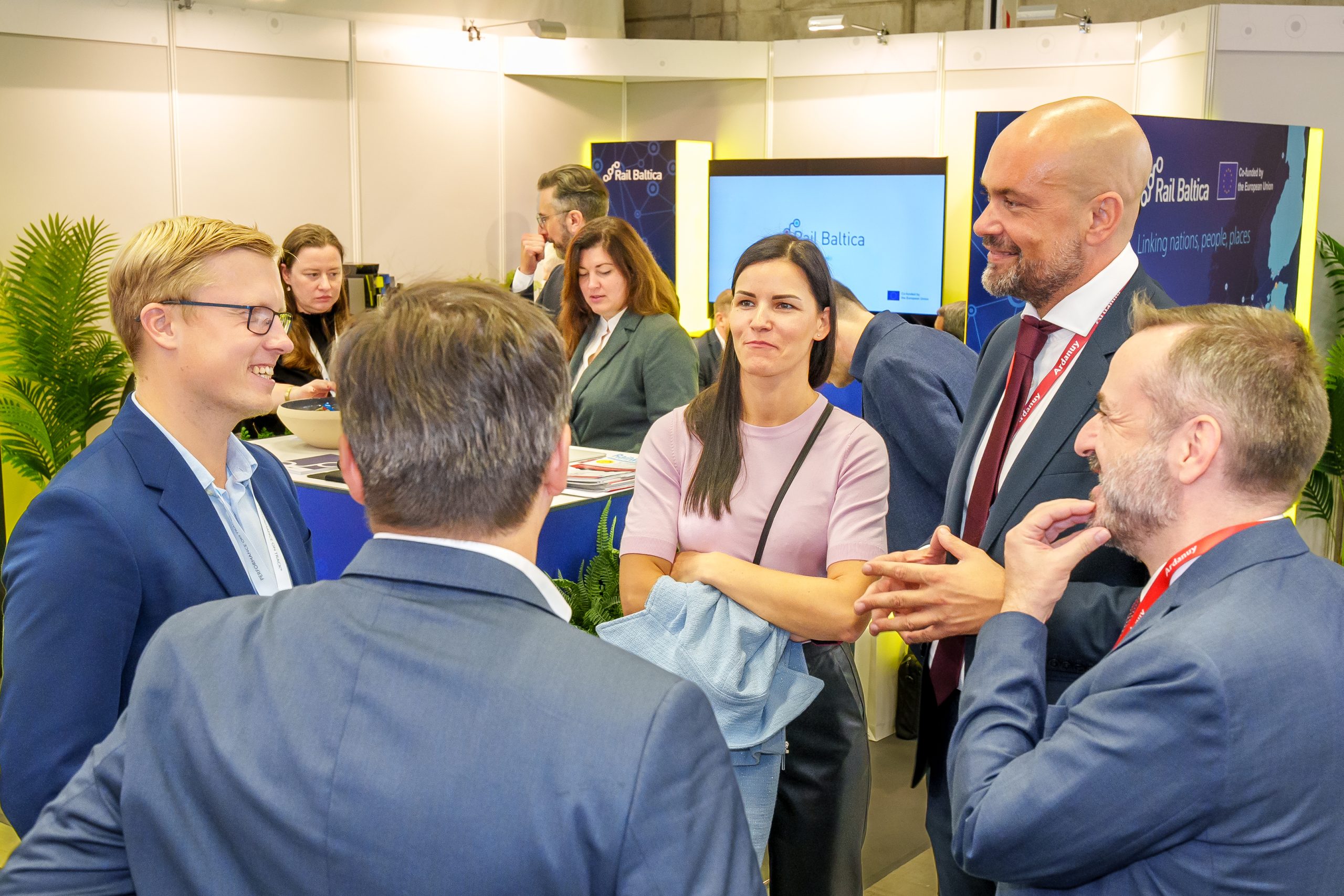 The Rail Baltica stand attracted a diverse audience, including existing project partners, potential suppliers, media representatives, and other stakeholders. During the exhibition, many questions were raised about the progress and key priorities of the Rail Baltica global project, and the overall interest allowed the Rail Baltica extended team to address relevant questions and provide insights into ongoing efforts.