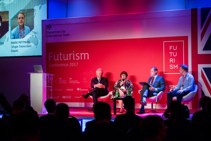 Futurism Conference 2017, Tallinn, September 7, 2017. From left: Alan James (Hyperloop One), Baiba Rubesa (Rail Baltica), Tonis Tamme (TRINITI), Mark Pattman ( Mark Pettman (Virgin Trains East Coast)