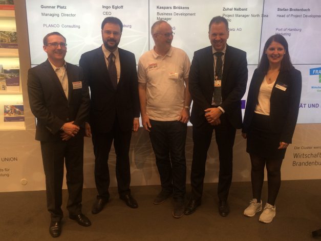 From the left, Stefan Breitenbach, Port of Hamburg Marketing, Kaspars Briškens, Business Development Manager, RB Rail AS, Ingo Egloff, CEO, Port of Hamburg, Gunnar Platz, Managing Director, PLANCO Consulting, GmbH, Zuhal Nalbant, Project Manager North Sea – Baltic, DB Netz AG.