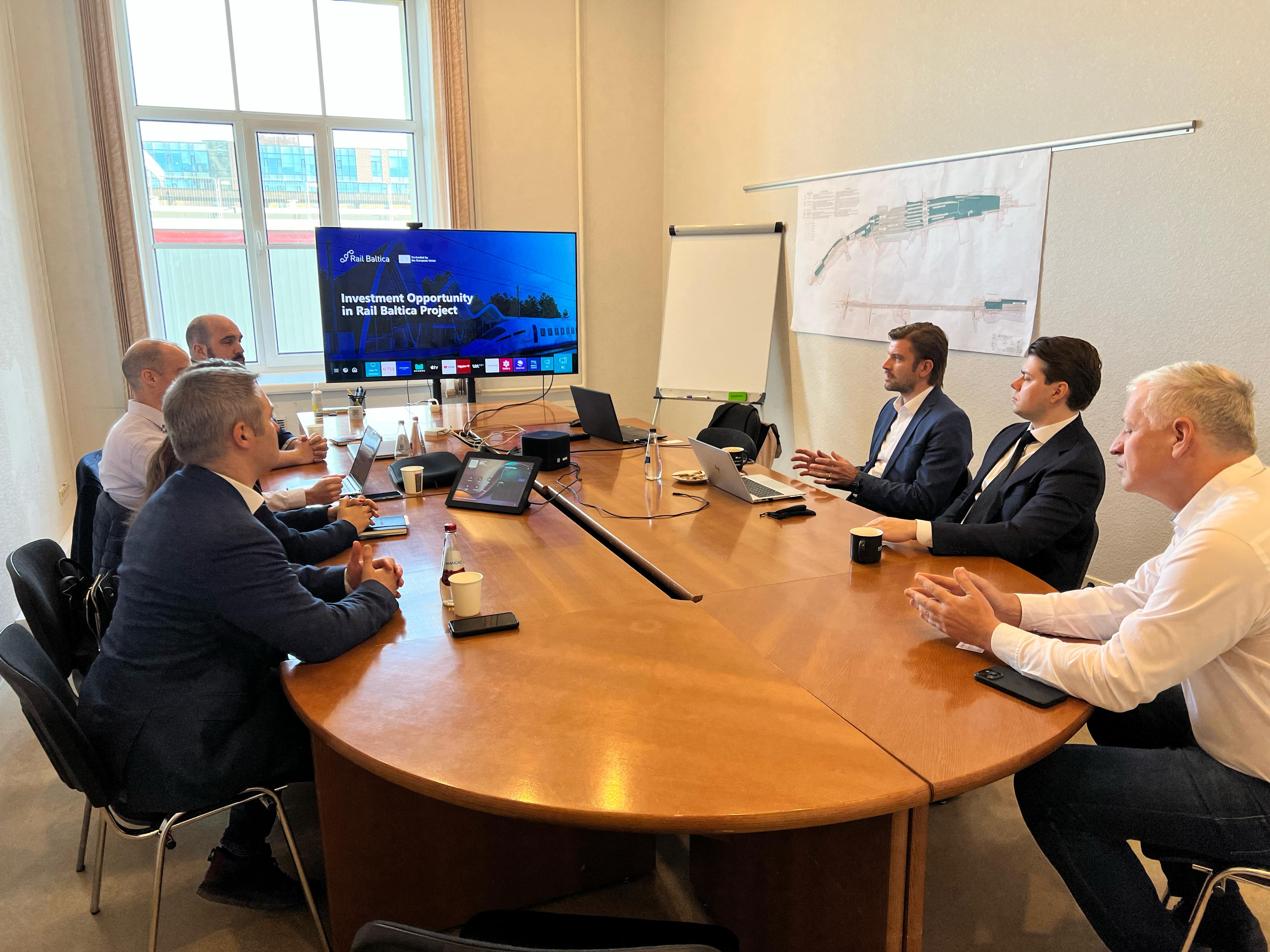 Chairman of the Board of Rail Baltica national implementing body in Latvia Eiropas Dzelzceļa līnijas, Ēriks Diļevs, together with Pēteris Celms, Head of Investment Development at the central project coordinator RB Rail AS, and Guntis Āboltiņš-Āboliņš, CEO of Bererix – the contractor for the Rail Baltica Central Hub in Riga – met on 4 April to explore PPP financing possibilities with the Swiss company SSB Holdings Group, which has international experience in financing both large-scale infrastructure and commercial projects worldwide.
