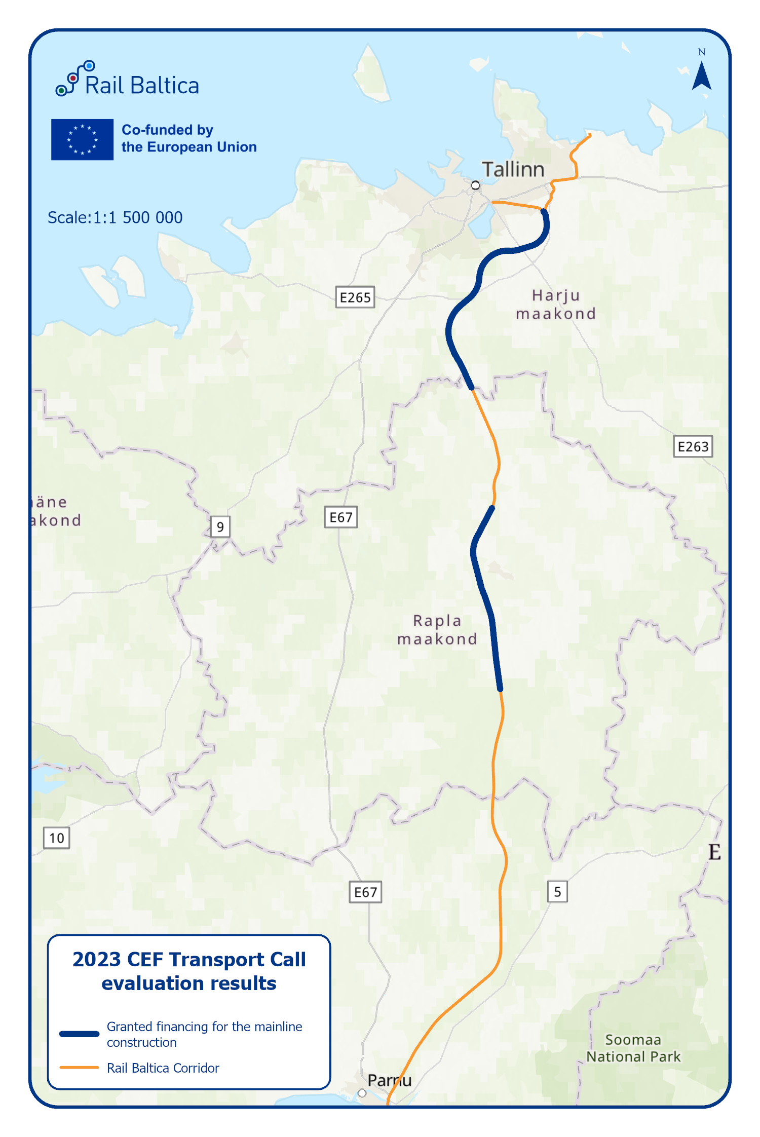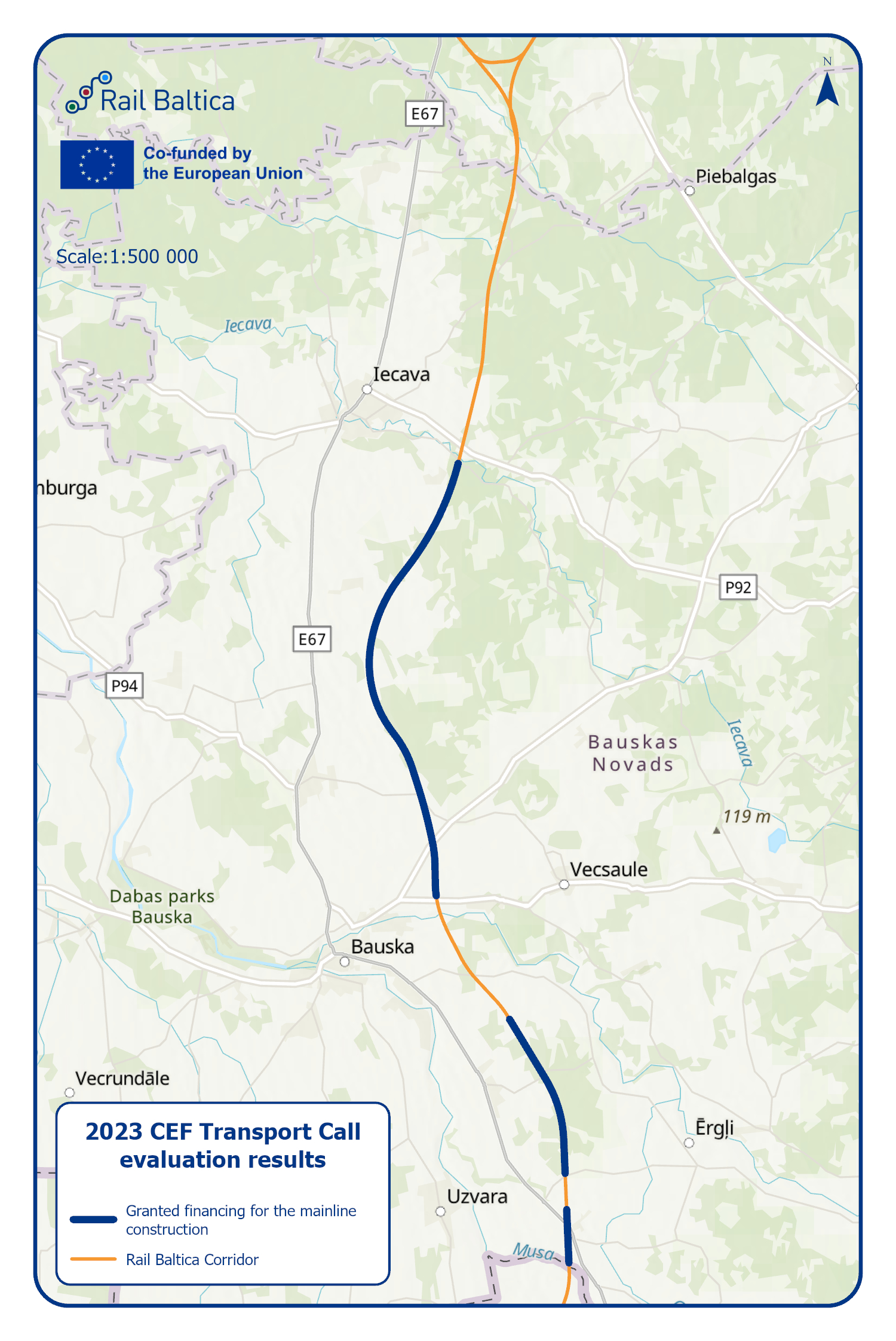 On 17 July 2024, the Rail Baltica joint venture RB Rail AS, representing the Ministries of Climate of Estonia, Transport of Latvia, and Transport and Communications of Lithuania, announced that the project has been awarded an additional €1.2 billion in the latest call from the Connecting Europe Facility (CEF). This significant funding, combined with national co-financing from the three Baltic States, will total €1.5 billion, enabling the progression of construction activities and the development of the next stages of Rail Baltica.