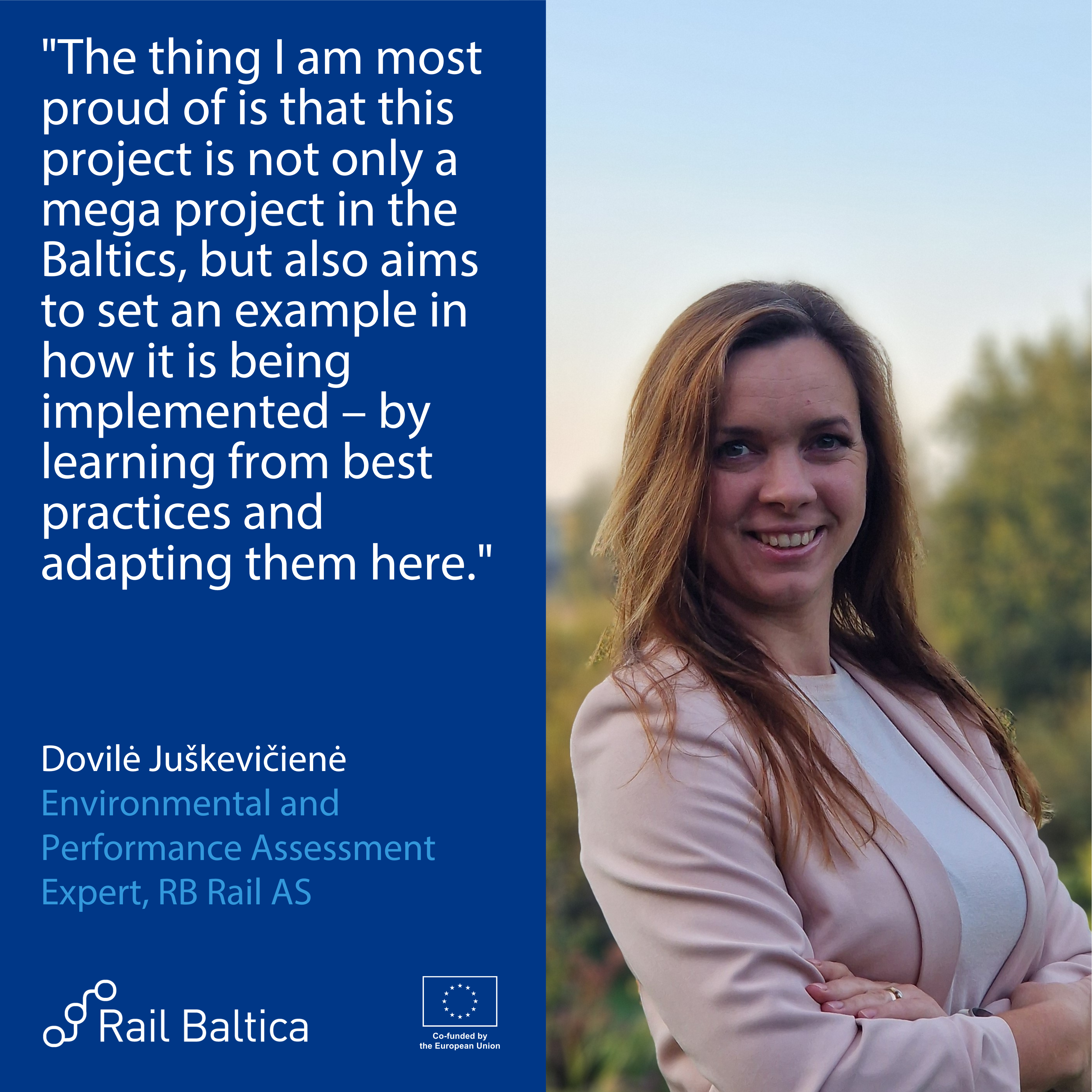 This week, we are pleased to introduce Dovilė Juškevičienė, Environmental and Performance Assessment Expert at RB Rail AS, who has been part of the Rail Baltica project for nearly four years. With a passion for protecting biodiversity and ensuring that large-scale infrastructure respects its natural surroundings, Dovilė plays a key role in making sure that the railway grows in harmony with the environment. From reviewing designs and monitoring construction sites to shaping sustainable practices across the project, her work highlights Rail Baltica’s commitment to responsibility as well as innovation. Dovilė’s journey reflects how dedicated professionals are not only building a railway but also setting new standards for environmentally conscious infrastructure in the Baltics.
