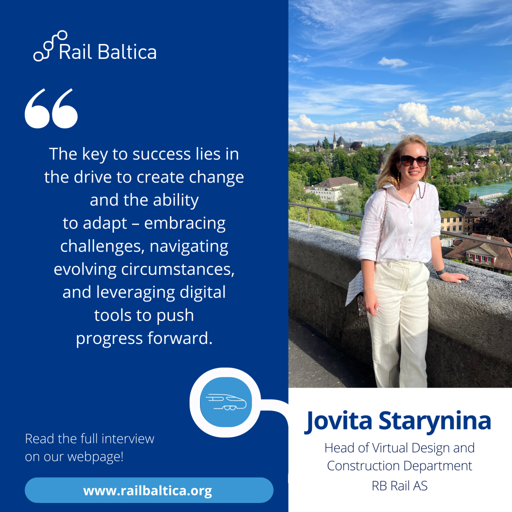 This week, we are excited to introduce our colleague Jovita Starynina from RB Rail AS, where she serves as the Head of the Virtual Design and Construction Department. Jovita joined the Rail Baltica project in 2018, driven by a passion to be part of a company and a team working on something truly groundbreaking. Over the years, her role has evolved from BIM & AIM Coordinator to BIM Team Leader, and now to her current position as the Head of the Virtual Design and Construction Department.
