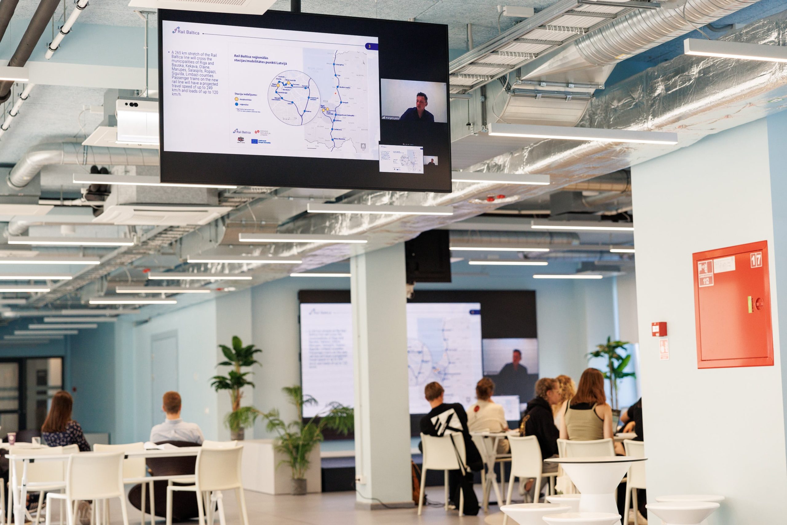 The Rail Baltica global project fosters positive collaboration and relationships with stakeholders, including residents, businesses, and local authorities, to ensure the project meets social needs and promotes inclusive benefits. To identify the most suitable and effective solutions for improving Rail Baltica stations as convenient regional multimodal transport hubs, the students in Riga participated in a hackathon at Riga Technical University. Their task was to explore how to maximize the benefits of Rail Baltica stations, encourage greater use of rail, foster new mobility habits, and suggest solutions and services to promote the shift from private to public transport.