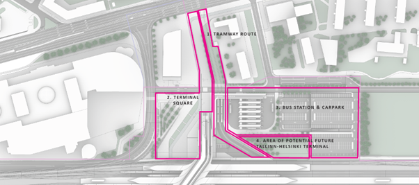 The northern outdoor areas also include a prospective station area for the Tallinn-Helsinki tunnel. The duration of the construction contract for the northern outdoor areas of the Rail Baltica Ülemiste passenger terminal is 36 months. The first phase involves design work.
