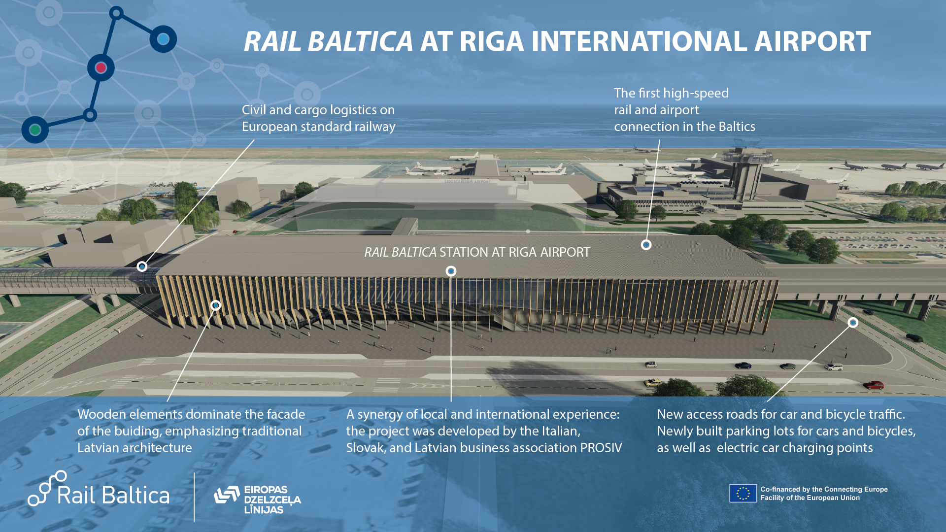 The contract has been signed and active construction works will commence in May of this year. The construction of the Rail Baltica station and its related infrastructure at Riga airport will be carried out by the winner of the international tender – the consortium B.S.L. Infra, which consists of the Austrian company Swietelsky AG and Latvian construction companies such as the road construction company SIA Binders and AS LNK Industries. The construction works are planned to be carried out in five stages until December 2025. The first stage of work, construction of Rail Baltica railway infrastructure from the railway station “Imanta” to the Riga international airport, as well as the construction of the station terminal, will have to be completed by March / April 2023.
