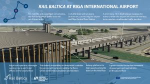 The final stage will be the railway track construction. It is planned to build two railway tracks so that the Rail Baltica high-speed train could run on the newly built railway line four times a day, a shuttle train every 30 minutes or so connecting the airport and the Riga Central Station. This will allow passengers to reach the center of the capital from the airport in only eight minutes.