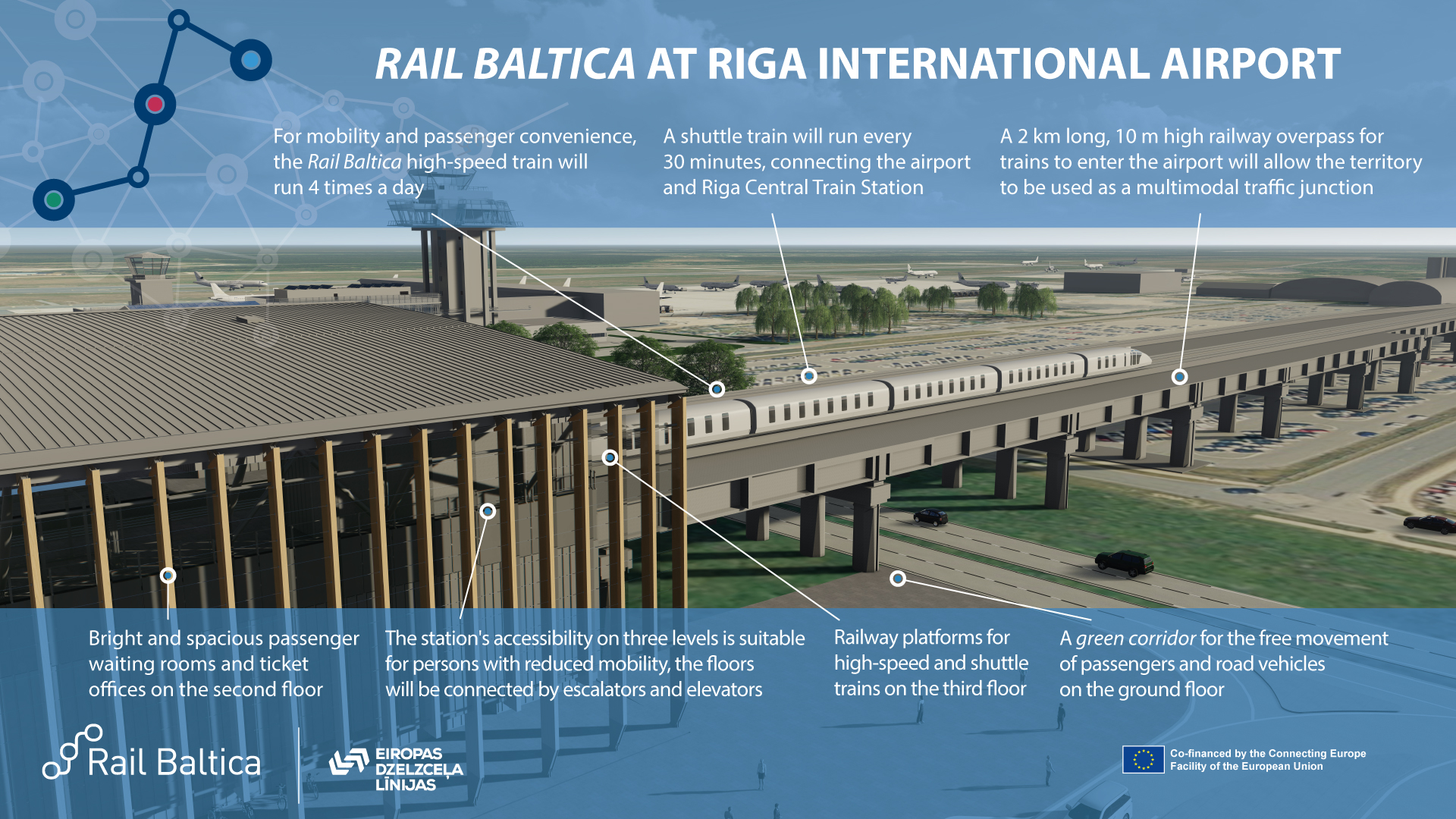 Kaspars Vingris, the chairman of the board of Eiropas Dzelzceļa līnijas, the implementing body in Latvia: “Construction of the second most important section of Rail Baltica now will begin in Latvia. The construction of both Rail Baltica international stations and regional stations along with the associated infrastructure will be the largest constructions in the coming years, creating hundreds of jobs. As a result of the construction of this project, in five years time our residents will have a modern and multifunctional traffic hub, which will be connected to the new passenger terminal at the airport. Mobility and convenience for passengers will be created – tracks, all systems and structures will be fully integrated into the existing airport infrastructure. In addition, the construction of the new infrastructure will provide an opportunity to expand cargo handling services, as it will be possible to establish a freight rail branch connection to the airport. This will strengthen Latvia’s status as an international destination and transit country. This construction project is large, complex, and quite difficult. 32 institutions are being involved in the preparation works and much of the work is done in the challenging conditions created by the pandemic. ”